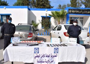قوات الشرطة وبناءا على تلك المعلومات قامت برسم خطة أمنية محكمة من خلال تشكيل افواج عملياتية لترصد تحركات عناصر هاته الشبكة و اقامة حواجز أمنية ونقاط مراقبة عبر محاور الطرق الرئسية والفرعية والتي أسفرت عن توقيفهم بحي جواد الطاهر بعزابة أين كانوا على متن مركبتين سياحيتين ، حيث تم خلال العملية حجز 10 صفائح من المخدرات بوزن إجمالي يقدر بـ 01 كيلو غرام ، إضافة لحجز أسلحة بيضاء متنوعة متمثلة في 02 سيف من الحجم الكبير ، 02 سكين من نوع كرانداري ، 01 سكين من نوع أوبينال بالإضافة الى بندقية صيد مائية / كما تم حجز خلال العملية قارورة دواء مهلوس من نوع إزوبتيل .، ليتم تحويلهم الى مقر الفرقة من أجل إستكمال التحقيق.