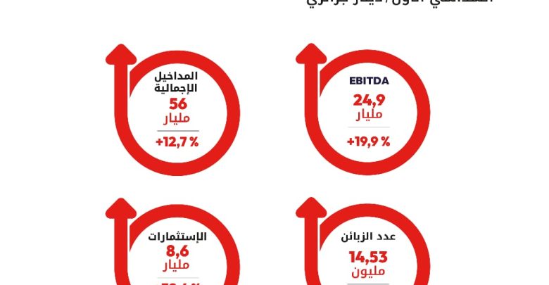 أعلنت مجموعة Ooredoo للإتصالات هذا الخميس 31 جويلية 2025، عن نتائجها المالية الخاصة بالسداسي الأول من سنة 2025. واصلت Ooredoo الجزائر مسارها التصاعدي، محققة نمواً برقمين من ناحية رقم أعمالها وفي مؤشر الأرباح قبل احتساب الفوائد والضرائب والاستهلاك والإطفاء EBITDA حيث بلغ رقم الأعمال 56 مليار دينار جزائري، مقابل 49.7 مليار دينار جزائري خلال نفس الفترة من سنة 2024، أي بزيادة قدرها 12.7٪. ساهم هذا النمو القوي في الإيرادات إلى جانب تحسين التكاليف في تحسين الأرباح، حيث بلغ مؤشر EBITDA نحو 24.9 مليار دينار جزائري، مقابل 20.8 مليار دينار جزائري في نفس الفترة من عام 2024، مسجلاً بذلك ارتفاعاً قدره 19.9٪.