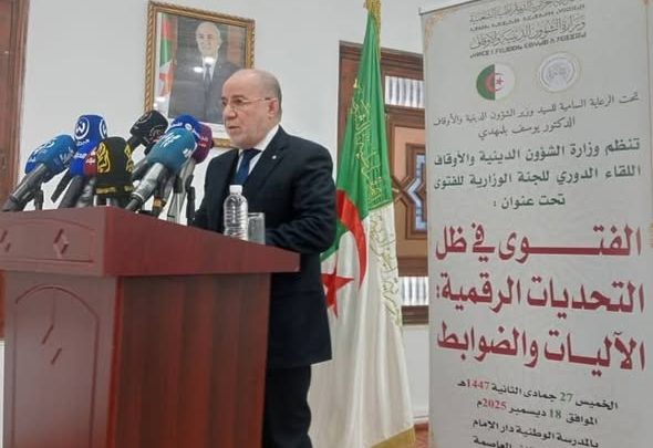 إشراف وزير الشؤون الدينية والأوقاف، الدكتور يوسف بلمهدي، على أشغال اللقاء الدوري للجنة الوزارية للفتوى، الذي خُصّص لمناقشة موضوع الفتوى والتحديات الرقمية في ظل التحولات التكنولوجية المتسارعة في العصر الحديث،وما يرافقها من تحولات في الفضاء السيبراني، وتحديات ما يُعرف بحروب الأجيال الجديدة.